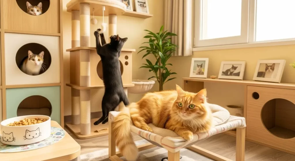 - y, en modalidades compartidas, decidir si interactuar con otros gatos o si mantener distancia.