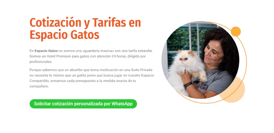 Escribinos por WhatsApp, contanos su edad, su personalidad, cómo está comiendo y qué cosas lo asustan. En Espacio Gatos te orientamos con criterio veterinario real para distinguir timidez de estrés, y te recomendamos la modalidad más segura (y los pasos previos) para que sus vacaciones sean un éxito.